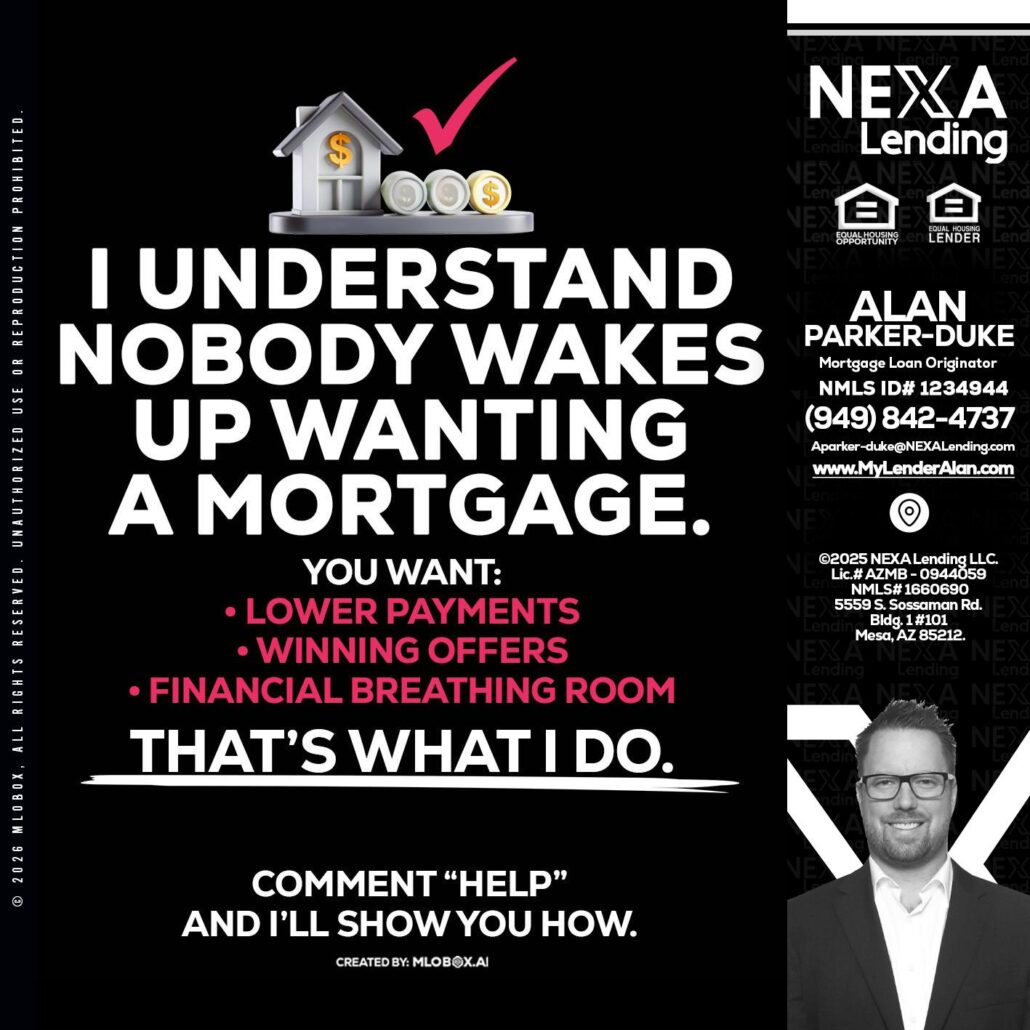 Hi, my name is Alan Parker-Duke. I’m a Loan Officer with NEXA Lending LLC., offering personalized mortgage solutions, fast customized quotes, great rates and service with integrity.