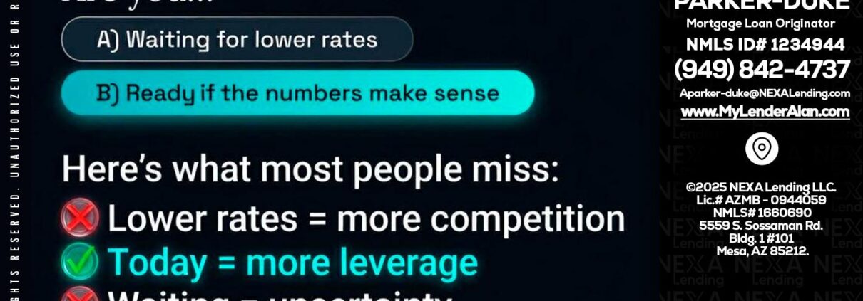 Hi, my name is Alan Parker-Duke. I’m a Loan Officer with NEXA Lending LLC., offering personalized mortgage solutions, fast customized quotes, great rates and service with integrity.